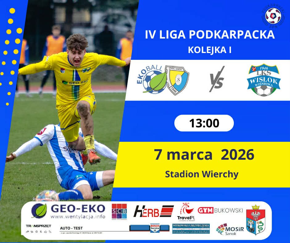 W najbliższą sobotę, 7 marca, o godzinie 13:00 żółto‑niebiescy z Klub Sportowy Ekoball STAL SANOK zainaugurują pierwszą kolejkę rundy wiosennej meczem Wisłok Wiśniowa.
